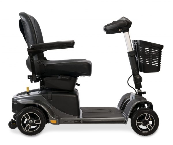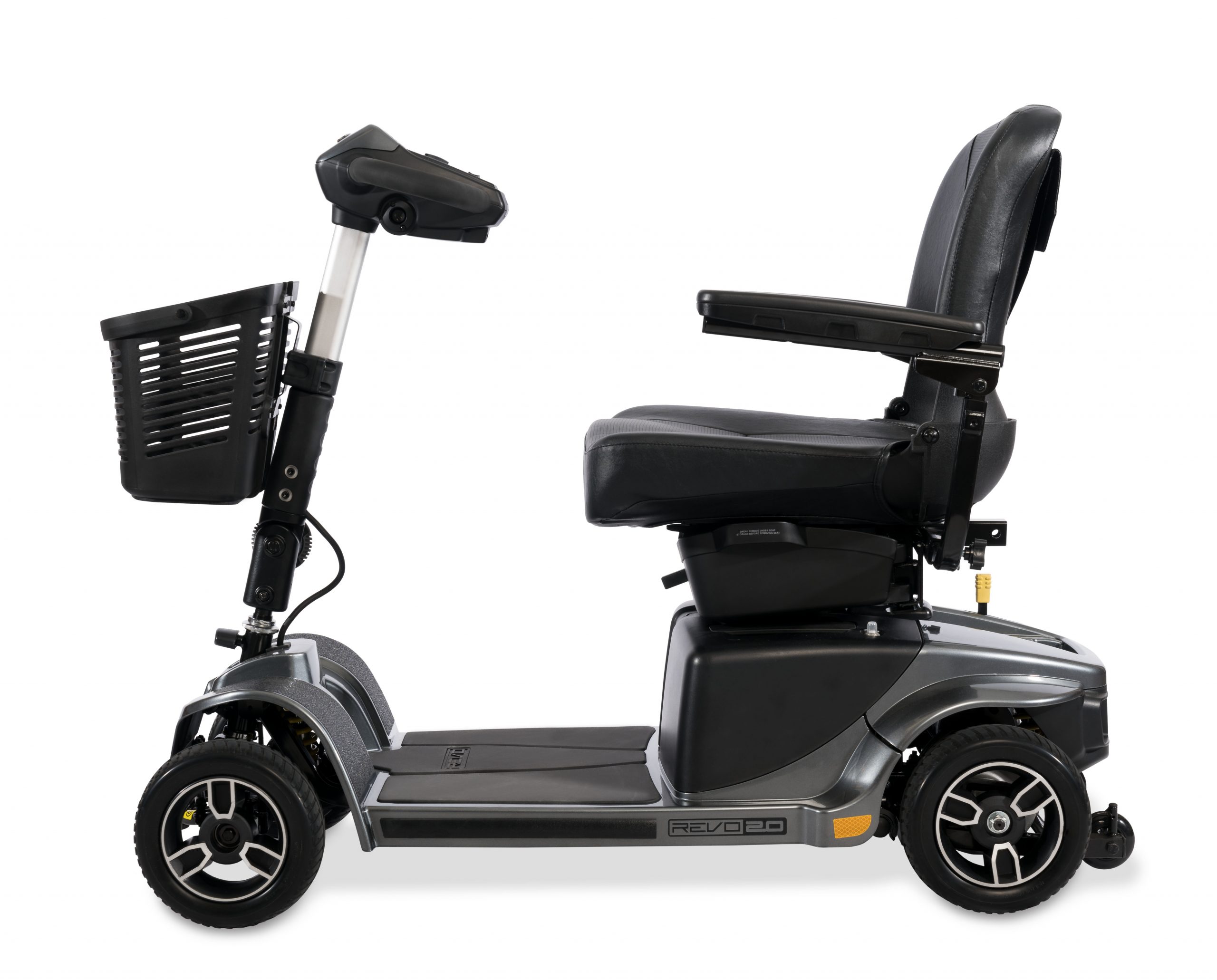 Experience the Revo 2.0, a new class of scooter that combines an array of features into one great package. Tough and built to last, the Revo 2.0 offers rugged dependability you expect from luxury mid-size scooters. Comfort-Trac Suspension (CTS) ensures a smooth and comfortable ride over varied terrain. Experience convenient, feather-touch disassembly for portability that is comparable to our Travel Mobility line. Enjoy standard under seat storage and speeds up to 5 mph. Ride on with the Revo 2.0!